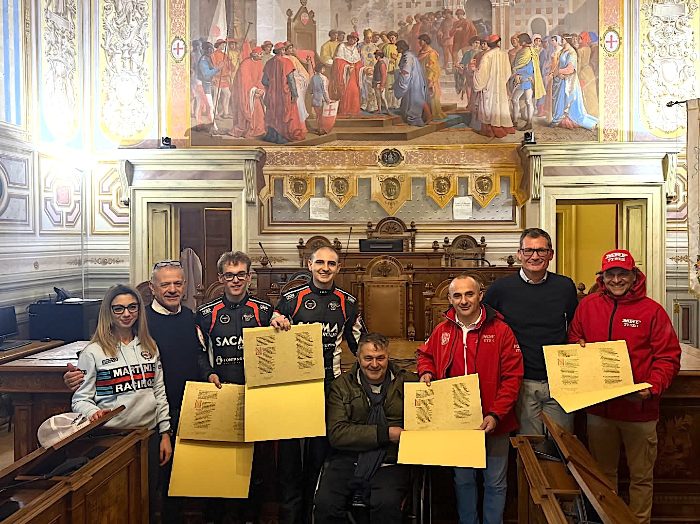 Ai tre, che domani si attendono protagonisti di prima scena della gara, sono stati consegnati due riconoscimenti della Città: a Paolo Andreucci per la sua immensa carriera, impreziosita da ben 14 titoli italiani di rally, mentre Fontana e Arnaboldi sono stati premiati per la loro straordinaria vittoria nel Campionato del Mondo WRC-3 del 2025.
