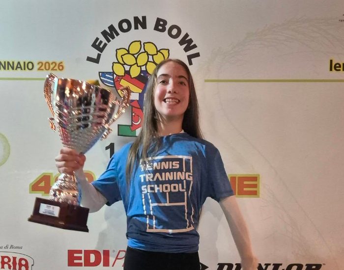 Grande soddisfazione per la piccola tennista accompagnata a Roma dalle Maestre Chiara Girelli e Rebecca Alessi. La cura TTS funziona. La piccola tennista è giunta a Foligno da poco più di un mese e prima di vincere a Roma il Lemon Bowl, uno dei più prestigiosi tornei internazionali giovanili aveva vinto, in chiusura di 2025, l’Open Trofeo Città di Spoleto.