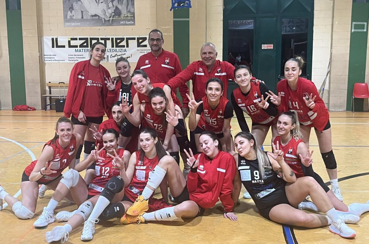 SPELLO VOLLEY: Eleuteri 5, Canali, Manni 14, Febbrari 11, Sirci (L), Crescimbeni 6, Grimaldi 13, Trabalza 17, Beddini 2, Solitro 1, Terenzi (L2). All. Giannursini