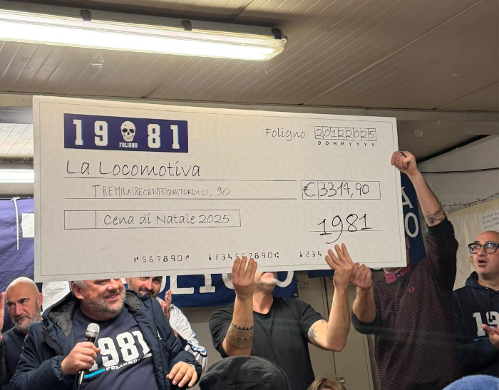 FOLIGNO – Ancora un’importante iniziativa carattere sociale, organizzata dai tifosi del Foligno ed in particolare dal gruppo Foligno 1981. Prima di Natale a Sportella Marini si sono riunite oltre cento persone per una deliziosa cene di beneficienza.