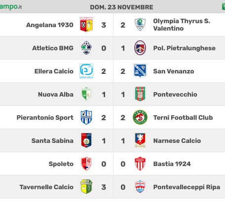 ATLETICO BMG (3-5-2): Battistelli; Cerboni; Tapia (30’ st Piermarini); Menchinella; Gonzales Garces (14’ st Luparini); Maselli; Valentini (37’ st Piancatelli); Giustini (14’ st Santoni); Dantraccoli; Petterini; Rinalducci (14’ st Passaquieti). A disp.: Carnevali, Auricchio, Massari, Molinari. All.: Proietti