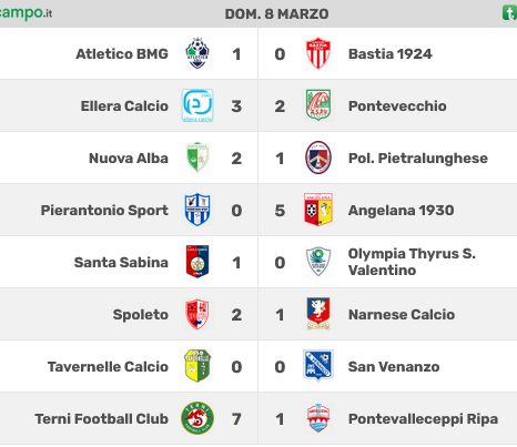 Finisce cosí 1-0 per l’Atletico Bmg, sempre piú in zona Playoff, con 41 punti in totale, di cui 18 nelle 9 giornate disputate fino ad ora nel girone di ritorno.