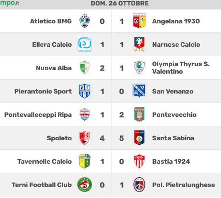 SPOLETO: Antonini, Gigliotti, Benedetti (34’st Canalicchio), Fapperdue, Boninsegni (34’st Luparini), Fabris (41’st Ciucci), Balzamo (20’st Paun), Colarieti, Tramontano, Kola, Camara (1’st Rosignoli). A disp: Francesconi, Bartolini, Zinni, Formichetti. All: Cavalli.
