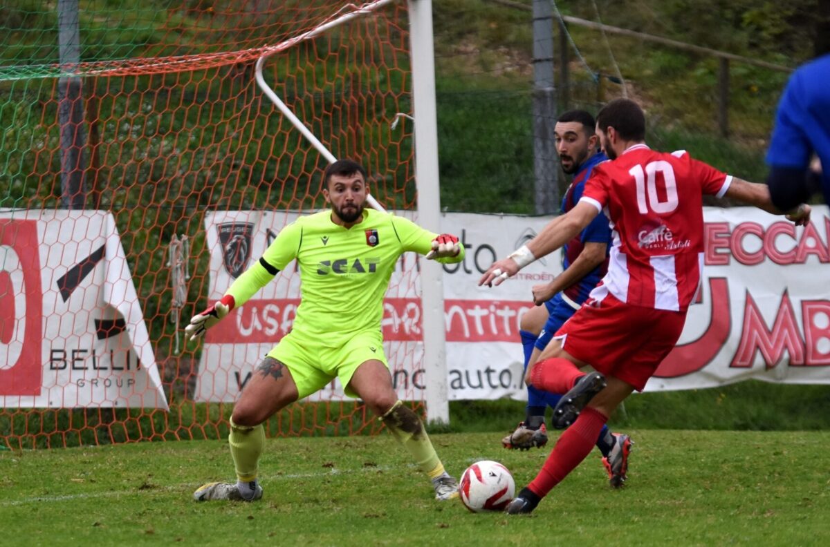 Sul finale di primo tempo c’è spazio anche per un’altra azione dello Spoleto, ma stavolta Kola trova sulla propria strada l’intervento di Alunni.