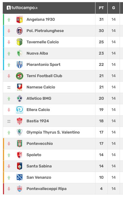TERNI FC (3-5-2): Cunzi; Esposito (29’ st Adelfo); Flavioni (26’ st Giacomelli); Ponti; Mattia; Rocci (8’ st Pucci); Carletti (8’ st Gaggiotti); Bagnato; Tramontano; Mainardi; Principi (26’ st Barrow). A disp.: Catalani, Betti, Domiziani, Mengoni). All. Borrello.