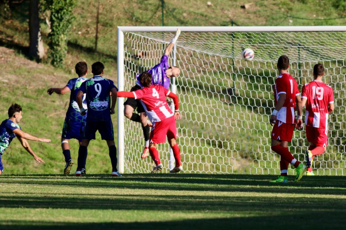 Il numero 1 dello Spoleto salva i suoi anche un minuto più tardi, quando Petterini si inventa una pennellata sul secondo palo col mancino e il classe 2005 vola allungando con la mano la palla in calcio d‘angolo e alimentando la carica dei suoi compagni di squadra.