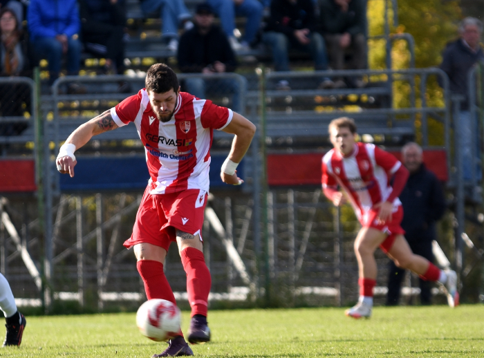 Passano infatti due minuti e Calderini lanciato sulla sinistra va via a Gigliotti e confeziona una palla in area per Cori, che pressato cade sul primo controllo, ma riesce comunque da terra a depositare in rete il pari dei padroni di casa.