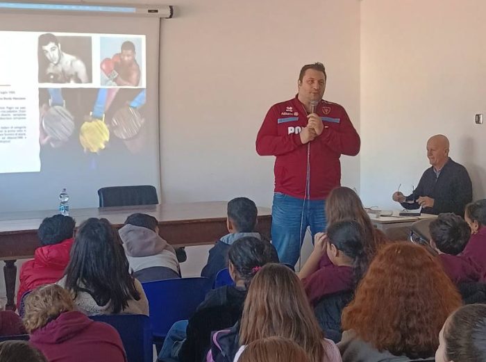 FOLIGNO – Un’esperienza da ricordare per i giovani studenti della scuola media carducci di Foligno. La settimana scorsa a raccontare la sua esperienza sportiva ai ragazzi è stato il campione olimpico di pugilato Roberto Cammarelle, accompagnato dall’ingegnere, prestato alla fotografia sportiva, Giuseppe Cardoni.