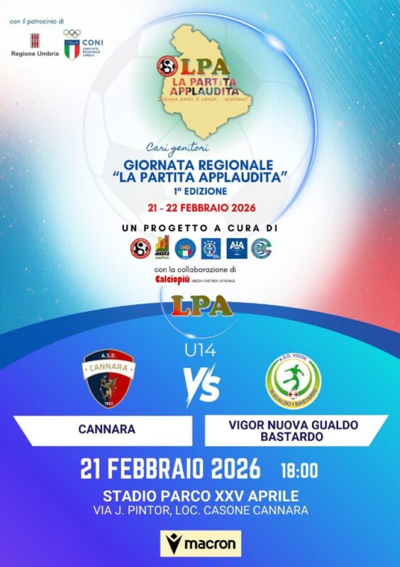 Anche allo Stadio Parco 25 Aprile di Cannara (Casone) sabato 21 febbraio si giocherà “La partita applaudita”. I protagonisti saranno gli U14 del Cannara e della Vigor NGB. Fischio d’inizio ore 18.