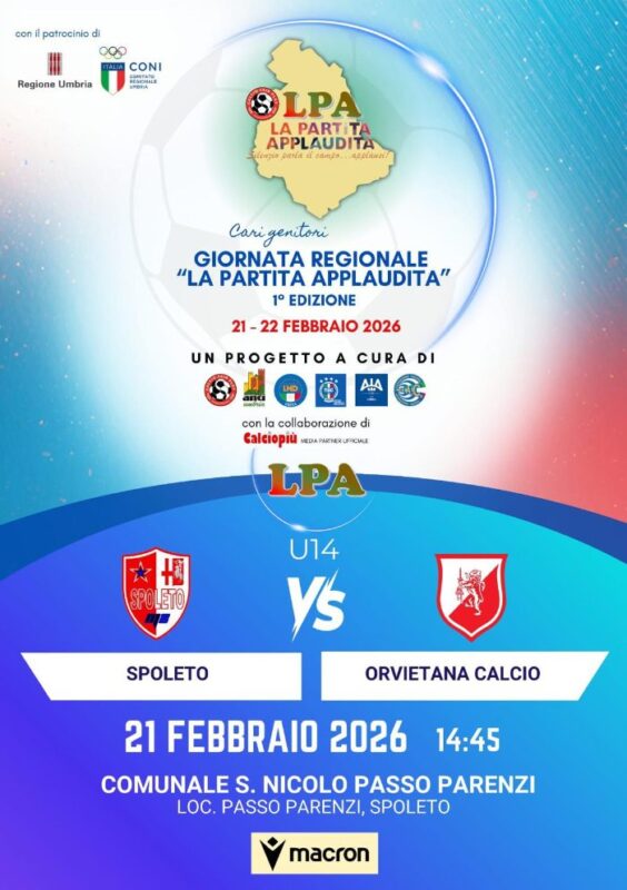 SPOLETO – Anche lo Spoleto aderisce alla giornata regionale de “La partita applaudita”, il progetto a cura tra gli altri della LND dell’AIA, con il patrocino della Regione Umbria e del CONI.