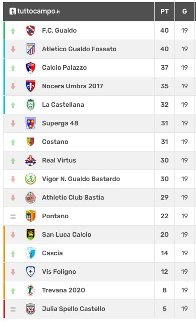 Ovviamente le giornate che si pongono di fronte a entrambi i team sono molte, e una partita non basta a salvare una stagione, ma può svoltarla. Ora sono 8 i punti della Trevana, a tre lunghezze di distanza dallo Spello, che occupa l’ultimo posto in classifica. 12 invece quelli della Vis Foligno, quattordicesima in graduatoria e chiamata a risollevarsi immediatamente dopo la brutta batosta di oggi contro il San Luca. Ad attendere gli uomini di Cotroneo, invece, l’Athletic Club Bastia, sul campo del quale si cercherà di dare continuità a una vittoria stoica come quella di questa diciannovesima giornata.
