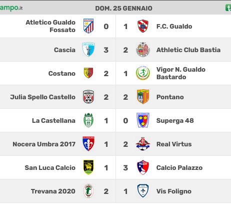 VIGOR NUOVA GUALDO BASTARDO: Tagliavento, Malossi (Pasqualini), Stitic Tadic, Rossi (10’ st Giardini), Tordi, Lucentini, Peppucci (Pantalla), Ferraldeschi (30’ st Cappelletti), Ambrogi, Tomassoni, Valentini. A disp.: Bellachioma, Bovini, Bellini, Biagioni, Giovannelli. All.: Baciucco.