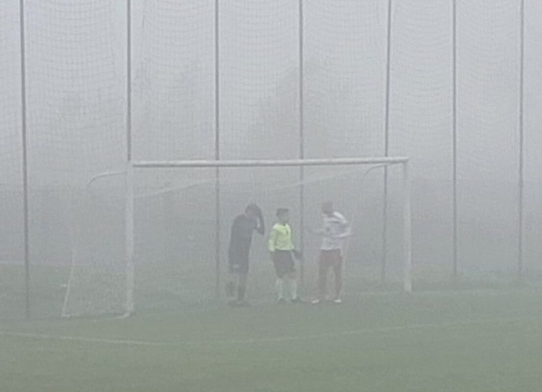 FOLIGNO – L’arbitro ha atteso oltre 20 minuti, poi ha preso la decisione definitia: troppa nebbia non si può giocare.