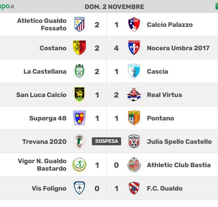 NOTE: espulso Appodia (VF) al 25’ st per fallo da chiara occasione da rete. Sabatini (VF) para un rigore a Monacelli (G).
