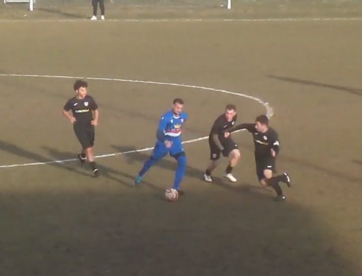 Gli ospiti orchestrati da mister Siniscalco hanno numerose occasioni per sbloccare la partita, ma alla fine la disa di casa stringe i denti ed il portiere Moscatelli riesce a mantenere la porta inviolata. Entrambe le squadre finiscono la partita in dieci uomini.