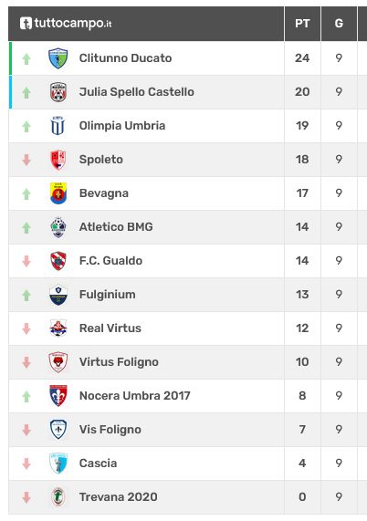 La Julia Spello Castello si insedia in seconda posizione vincendo di goleada contro la Trevana 2020 ancora ferma all’ultimo posto a zero punti. In terza posizione sale l’Olimpia Umbria che vince col classico punteggio di 2-0 contro la Vis Foligno terzultimo.