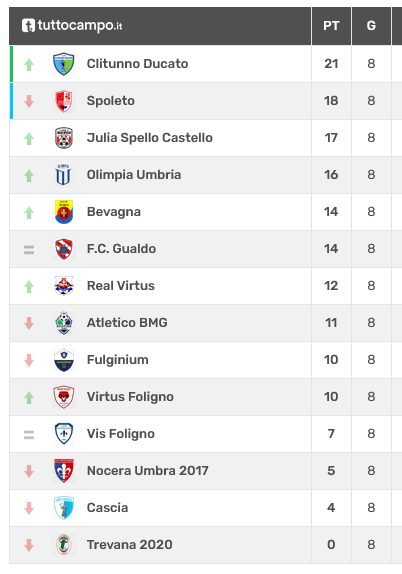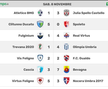 Nell’ottava giornata del girone di andata si scinde la coppia regina e rimane in testa alla graduatoria la Clitunno Ducato che fa cinquina contro lo Spoleto. Nella partita del Capitini da segnalare la doppietta di Padovini.