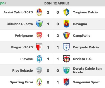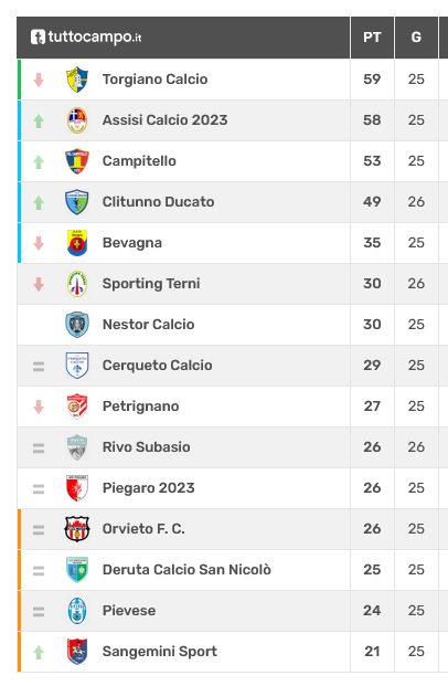 CLITUNNO DUCATO (4-3-3): Roani; Nicola Cuna, Gramaccioni (17’st Lucaj), Bucciarelli, Alessandro Cuna; Ammenti, Biocco (39’st Alessio Ivani), Boraschini; Sabatini (23’st Conti), Stella (36’st Crispini), Chiacchierini (41’st Zinni). A disp.: Andrea Ivani, Piernera, Fedeli, Testaguzza. All.: Fausto Ricci