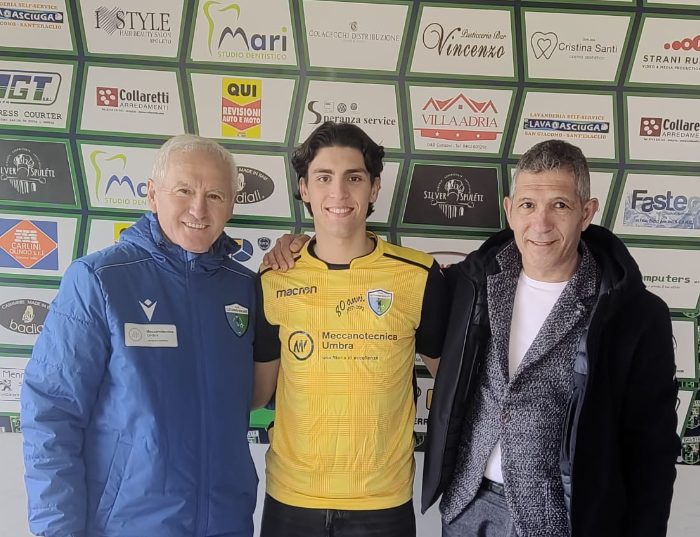 L’ex Ducato Spoleto (nella foto con i direttiri sportivi Rossi e Stella), dopo l’esperienza allo Spoleto va a rinforzare il reparto avanzato della prima squadra Mister Fausto Ricci.