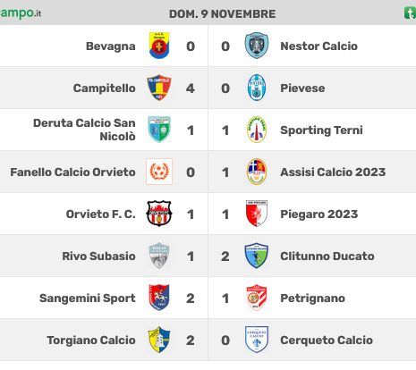 Ora i canarini bevanati sono attesi sul campo dello Sporting Terni la prossima domenica mentre i ragazzi di Caporali ospiteranno l’Orvieto F. C. Ma prima di tutto ciò i rivali di oggi si ritroveranno l’uno contro l’altro fra pochi giorni: questo mercoledì infatti il Comunale Checcarini di Marsciano sarà teatro del ritorno della semifinale di Coppa Italia Promozione e a darsi battaglia in tale occasione saranno proprio Nestor e Bevagna, con quest’ultimo che è uscito sconfitto per 3-2 dalla gara di andata giocata al Palmieri il 22 ottobre e sarà quindi costretto ad ambire alla vittoria per raggiungere quella che sarebbe una storica finale.