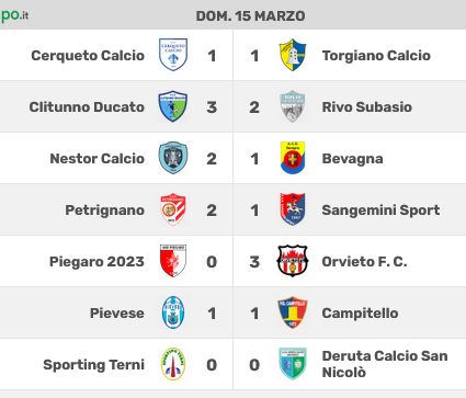 CLITUNNO DUCATO: Roani, Cuna N., Cuna A., Ammenti (36’st Lucaj), Bucciarelli, Rosi, Gjinaj (48’st Conti), Gramaccioni, Stella (45’st Crispini), Sabatini (28’st Boraschini), Biocco. A disp: Ivani An., Ivani Al., Pazzogna, Fedeli, Zinni. All: Ricci.