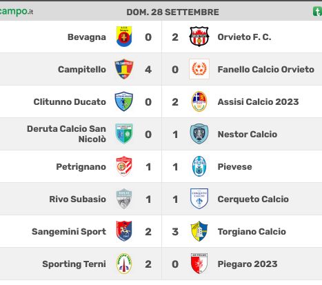 ASSISI CALCIO 2023 (4-3-3): Biscarini; Mancini (30’st Brunella), Ravanelli, De Santis, Lilli; Ubaldi, Gramaccia, Mammolito; Ventanni (43’st Currieri), Spanò, Paladino (29’st Ricciolini). A disp.: Ercolanetti, Cimarelli, Coppola, Camilletti, Fronduti, Cardaioli. All.: Andrea Lisarelli