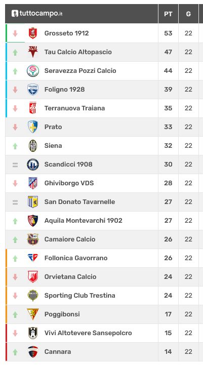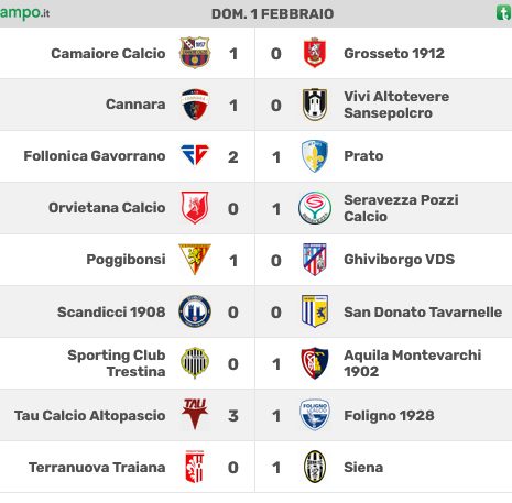 NOTE: ammoniti Meucci (T), Falasca, Ceccuzzi (F). Angoli: 4-4. Recupero: 0’ pt e 5’ st