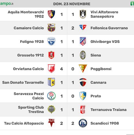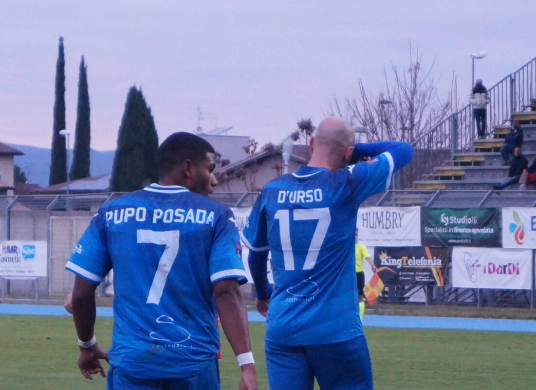 FOLIGNO (4-3-3): Rossi; Cichy (22′ st Qendro), Sbraga, Della Spoletina, Falasca; Marchetti (11′ st Ceccuzzi), Ferrara (39′ st Grea), Pellegrini; Sylla (43′ st Bevilacqua), Tomassini (28′ st D’Urso), Pupo Posada. A disp.: Mazzoni, Bocci, Bosi, Da Pra. All.: Manni.