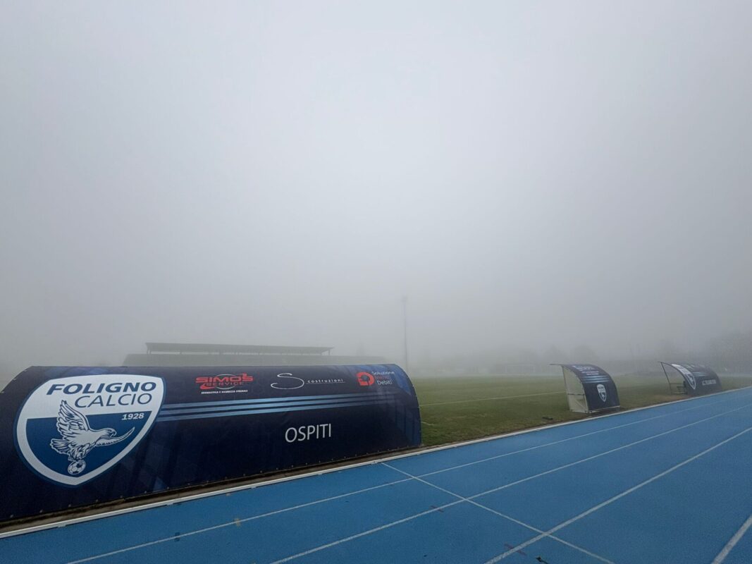 FOLIGNO (R.M.) – Guardate la foto voi stessi e giudicate. Che la gara Foligno-Seravezza sia a forte rischio per la nebbia non è un mistero.