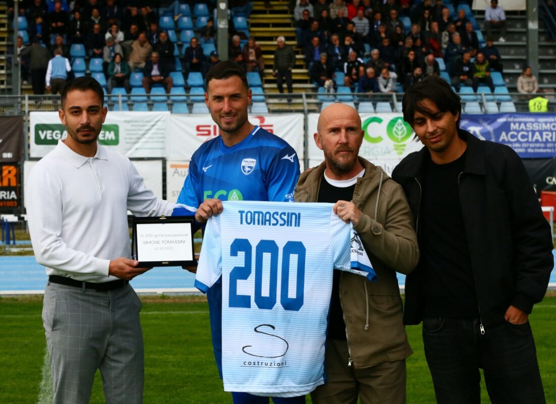 FOLIGNO (R.M.) – “Mister 200 reti”, Simone Tomassini, sicuramente in questo avvio di stagione è uno degli elementi trascinanti tra i biancoazzurri. Vero che domenica c’è stato un piccolo passo falso, se così vogliamo chiamarlo, ma la stagione della squadra di Manni è sin qui davvero positiva. Proprio con il bomber classe 1992, domenica premiato per il traguardo raggiunto, andiamo ad analizzare il momento: «Il traguardo delle 200 reti sicuramente deve essere un nuovo punto di partenza. Quando si raggiunge un obiettivo si punta sempre ad alzare l’asticella. Sono contento di esserci arrivato con questa maglia, con questa squadra e questi compagni al mio fianco».