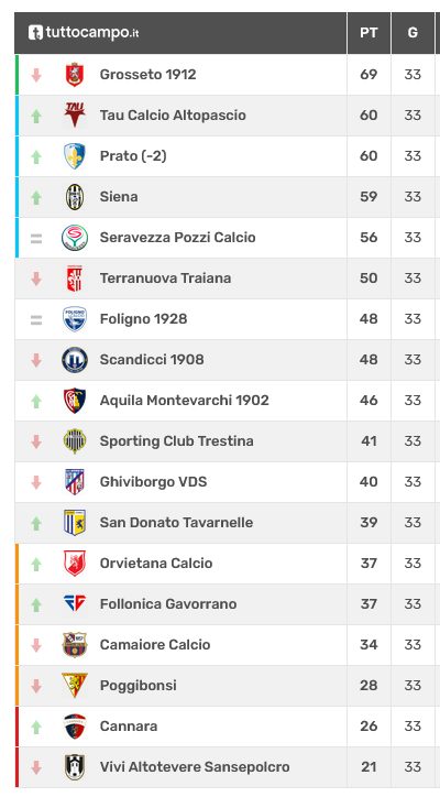 POGGIBONSI (4-3-3): Bertini, Borghi (6′ st Ciacci), Valenti (40′ st El Dib), Zuccherato, Boriosi, Masini (34′ st Magnati), Shenaj, Martucci, Borri, Gerbino (28′ st Accursi), Giustarini. A disp.: Pacini, Borri, Ndiaye, Viviavi, Salto Lomba. All.: Consonni